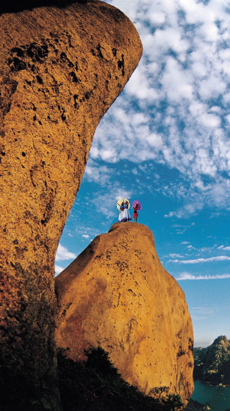 百家尖是长坑古道的县域内终点,登上百家尖是古道一路行走之后最具成就感的收获。民国时由于长坑古道是众多商人经常来往的脚力通道,一些土匪就在百家尖上立寨抢劫,后被正义人士驱逐解散,原山寨的门台及遗址今仍在。百家尖山峰奇特,三面悬崖,只有一面通道,海拔将近600米,一口气登上尖顶还颇有些费力,但是一览众山小的广袤视野足以抚慰一路上的辛苦和付出,让喧闹的心灵得到自然纯粹的满足。